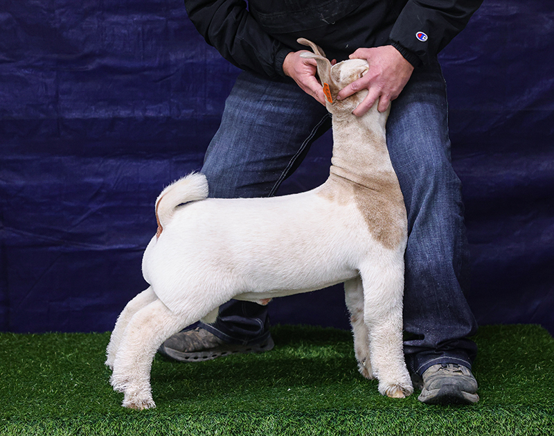 DORITO screams STUD BUCK. Skull, arm, density, and body shape are overwhelmingly rugged and masculine. His ability to smoothly be as stout as he is – extremely hard to put together. Flawless skeleton with intimidating muscularity. His mom is a winner made by breeding other winners together – power in the blood. Daddy Issues sired the Grand Wether and Doe at the 2024 American Royal. DORITO is double bred Daddy Issues with a shot of Catapult and Not Tonight – an absolutely royal current pedigree!